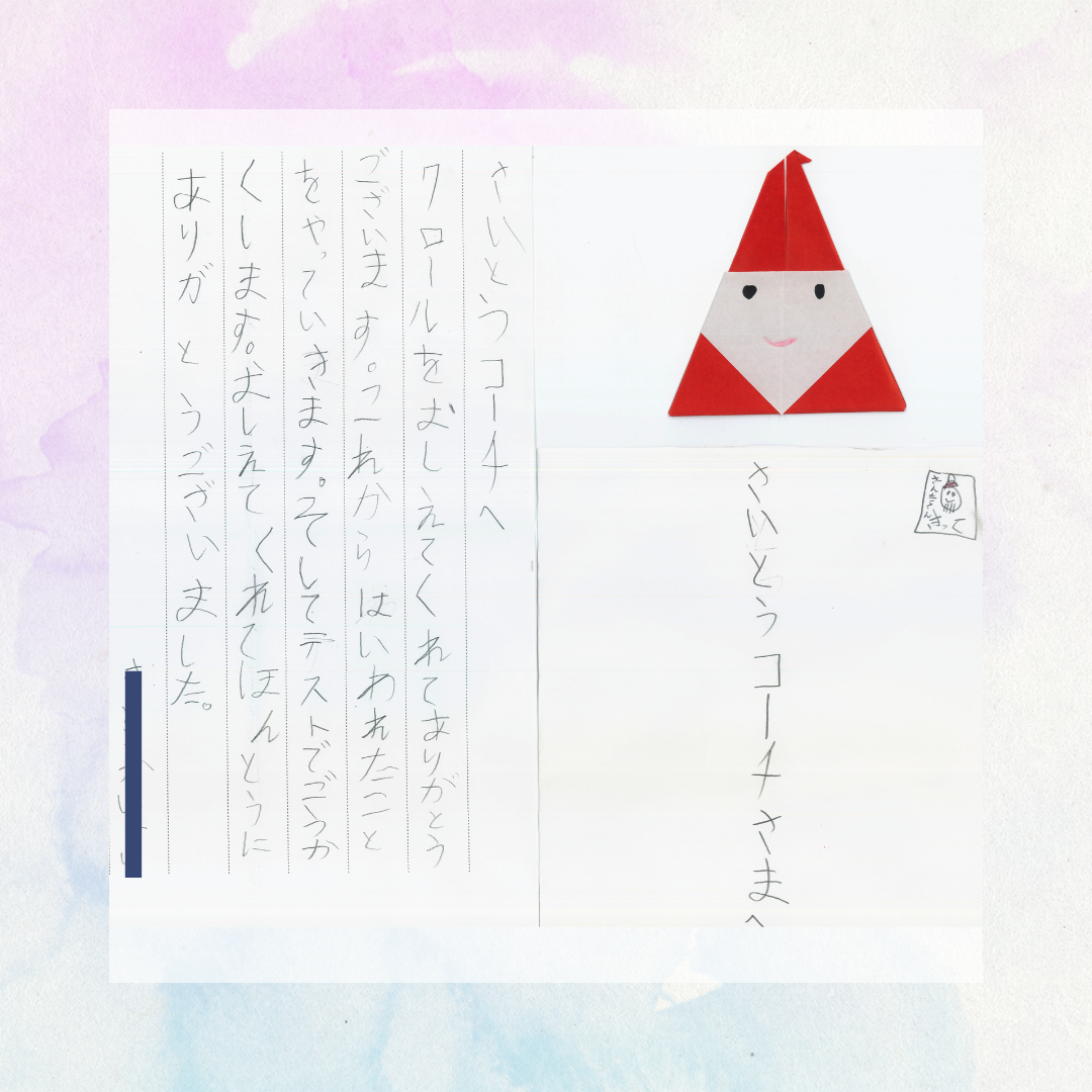 手作りの封筒の中身には、お手紙の他に折り紙のサンタクロースまで✨